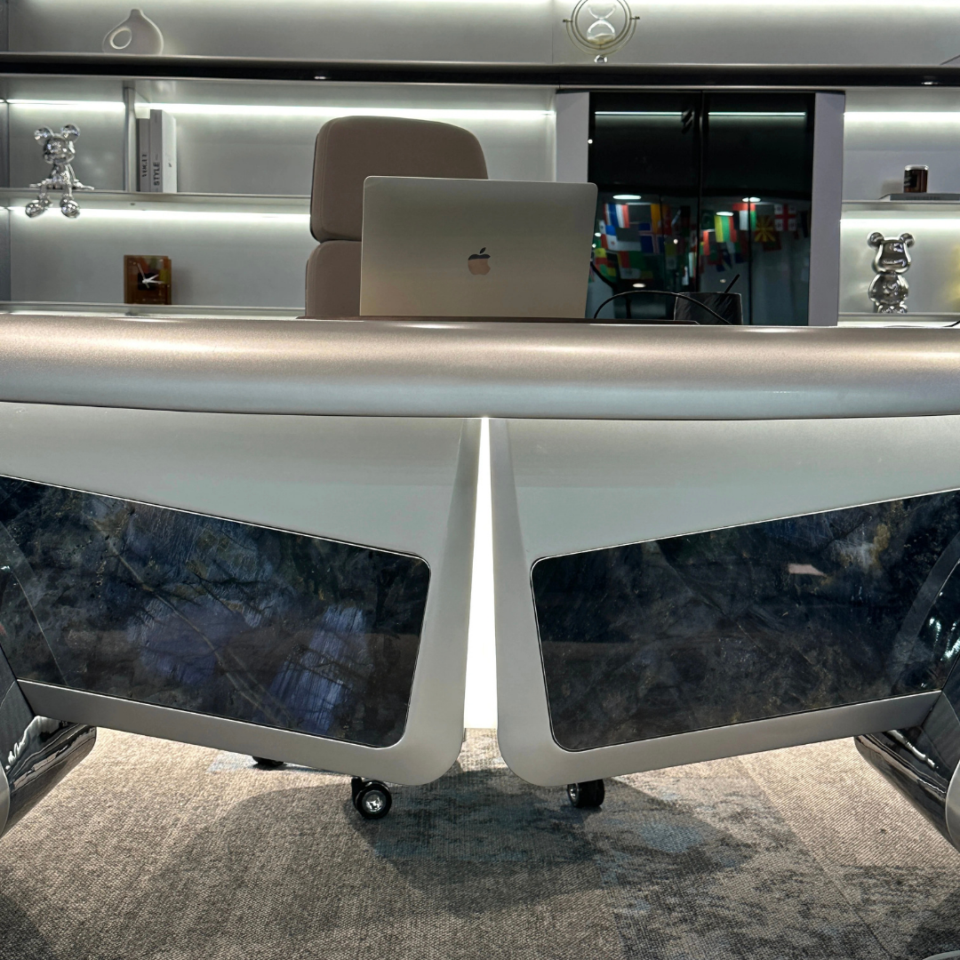 The DW-FLY-A001 Executive Desk is a statement piece designed for leaders who want a futuristic, high-performance workspace. Inspired by luxury automotive and aircraft aesthetics, the desk features an aerodynamic silhouette, sculpted contours, and illuminated edge detailing that elevates any premium executive setting.